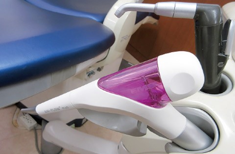 歯肉縁上の歯面清掃はもちろん、歯周ポケット内のバイオフィルムまで除去することを可能にした歯面清掃用機器【EMS エアフロー】の利用。