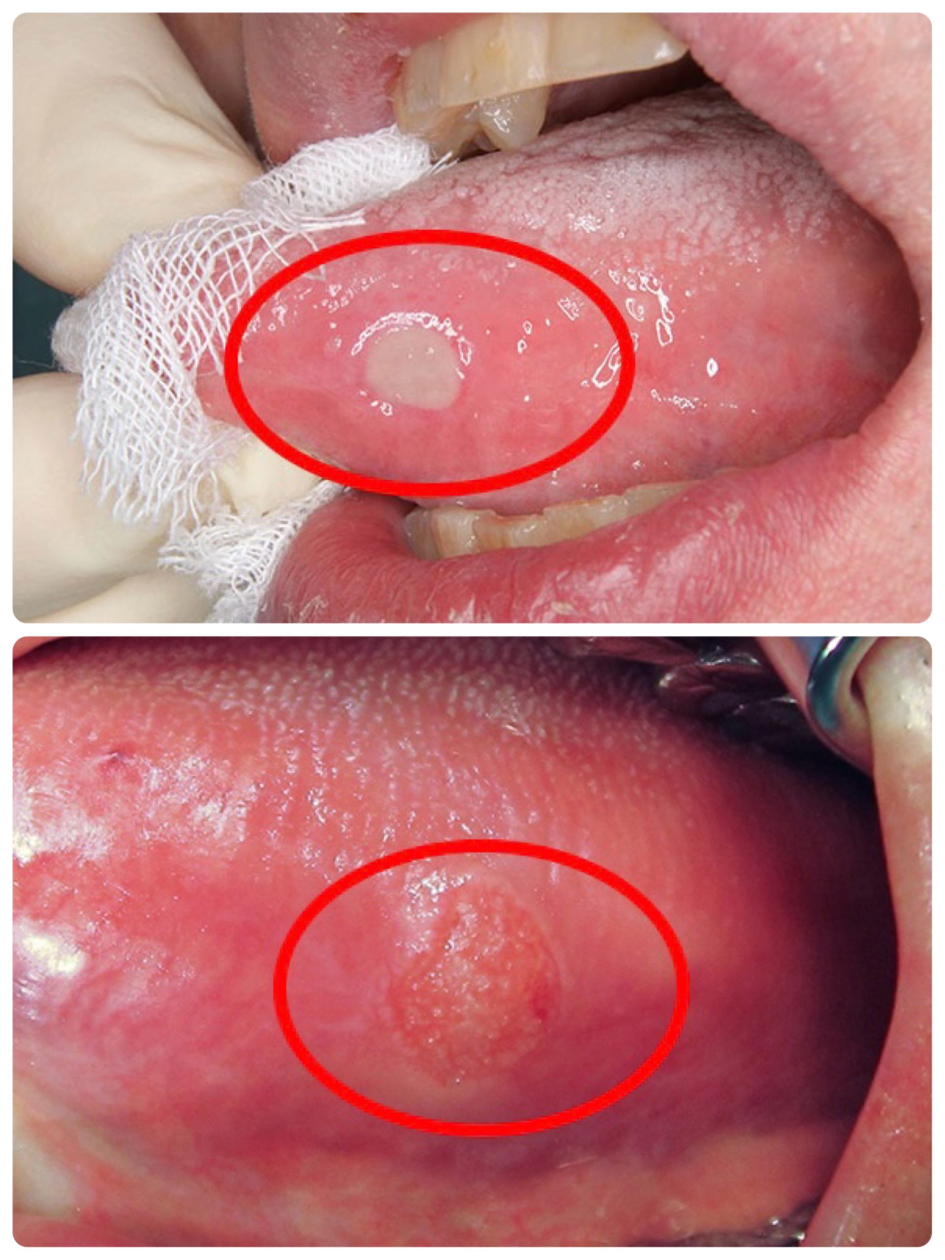 ◎上写真 口内炎 下写真 高学年の舌がん